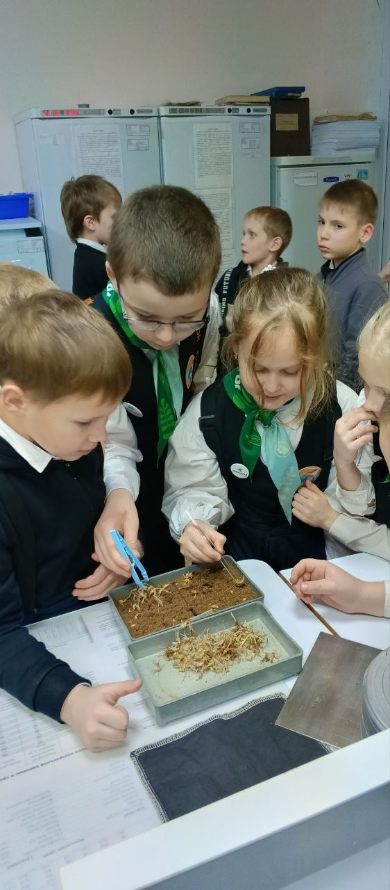 Юные экскурсанты с увлечением просевали зерно на ситах, разбирали семенной материал на чистоту, закладывали семена на всхожесть, снимали энергию прорастания и смотрели в микроскоп.
